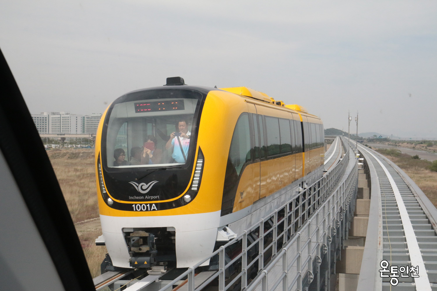 仁川空港を離れると、黄色の可愛らしい列車に会うことがで