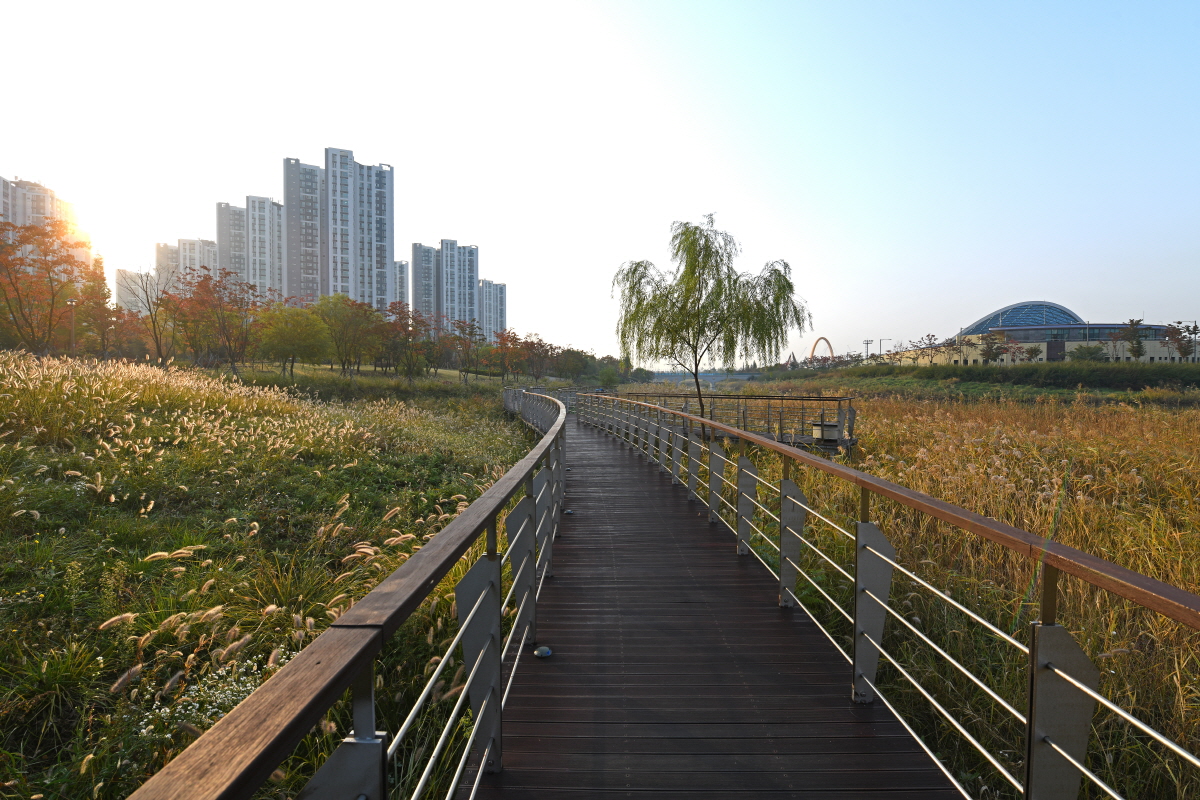 青羅国際都市中央にある公園で、75mまで 上がる超大型音楽噴水を見るため、多くの 人たちが訪れる。4.3㎞の循環散策路があり、 ドラマ『トッケビ』の撮影地として有名だ。