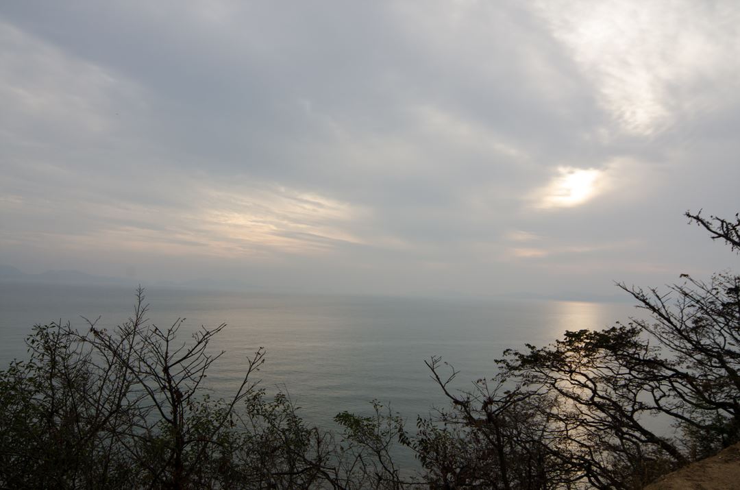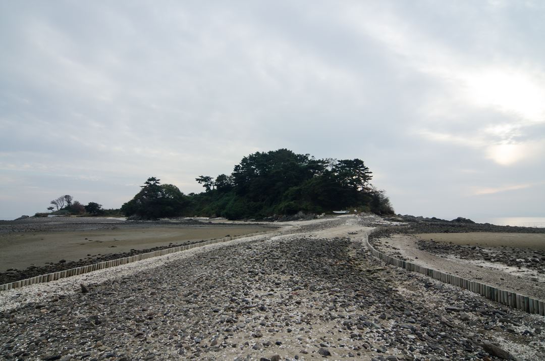 タルバウィ船着き場で右側の海岸道にあるが 、 陸橋が木島までつながっていて海の上を歩くような気が する。