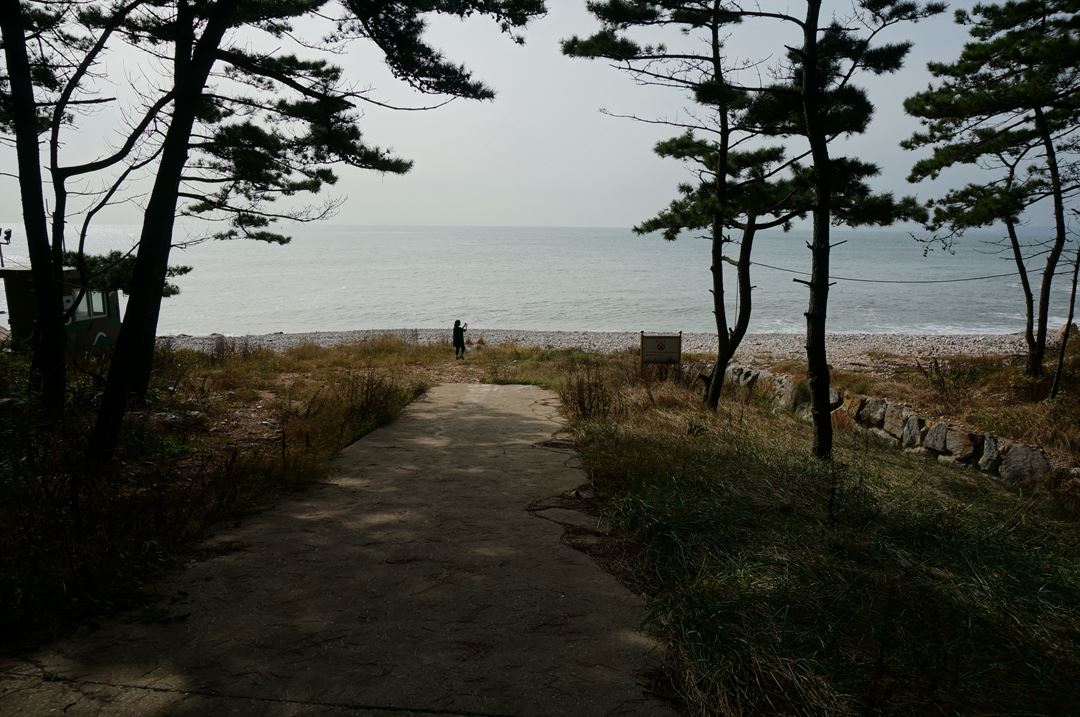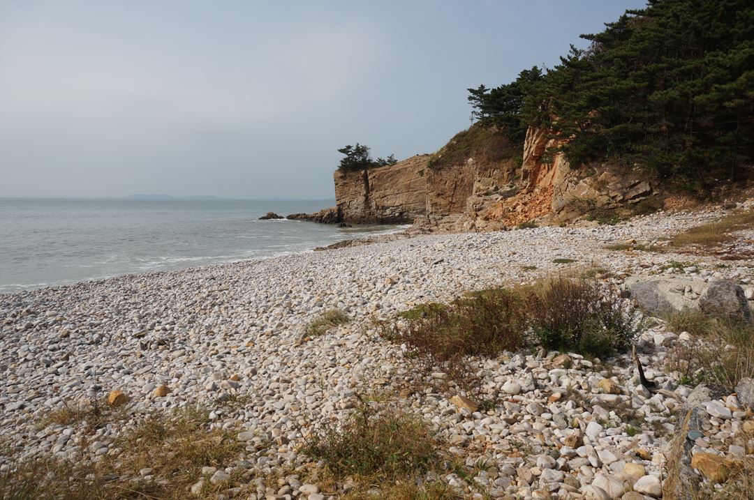 延坪島の絶景の一つで、歳月により岩を屏風のよう に長く作り上げた。イシモチ歴史館から北西を眺め るとすぐに見つけることができる。その前に広がるカ レチルギ海岸に降り立つと海水がひたひたと海岸を 洗う。